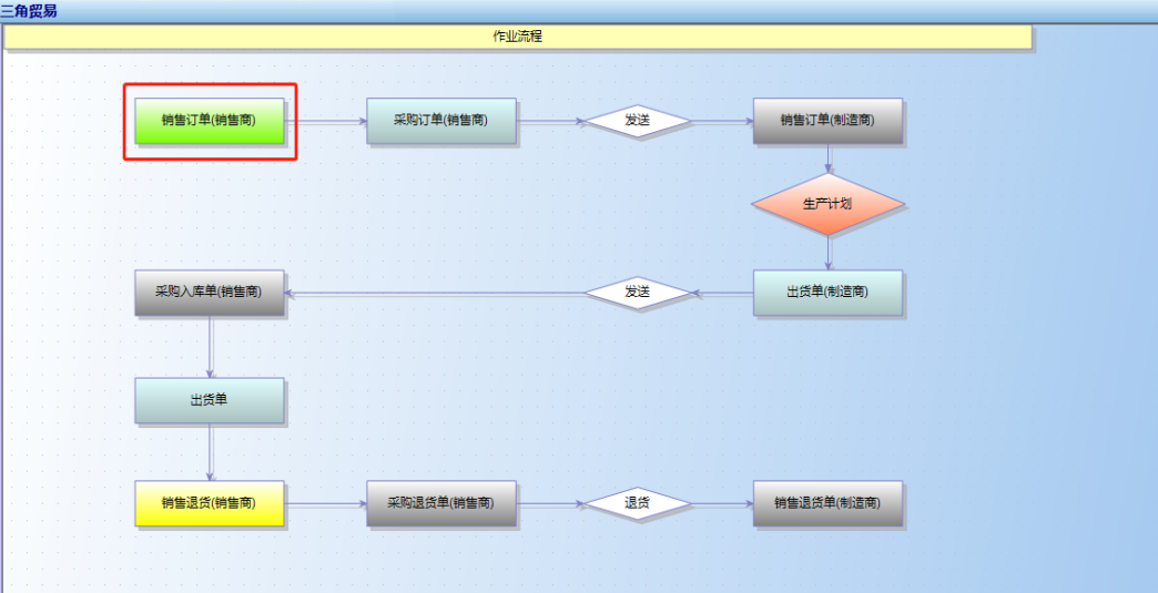 2.进入到三角贸易销售订单(制造商)界面: